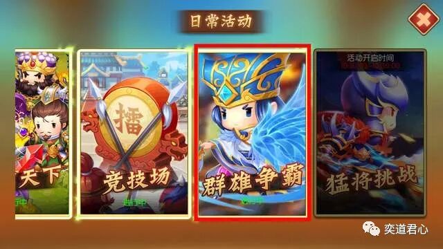 【萌军天下】的群雄争霸玩法入口,说起来还是非常容易找到的。无论你是在一望无垠的野外地图还是车水马龙的主城界面,都可以点选“日常”按钮进入。群雄争霸全天候面向玩家开放,因此各位并不用赶时间,有空随时可以来。