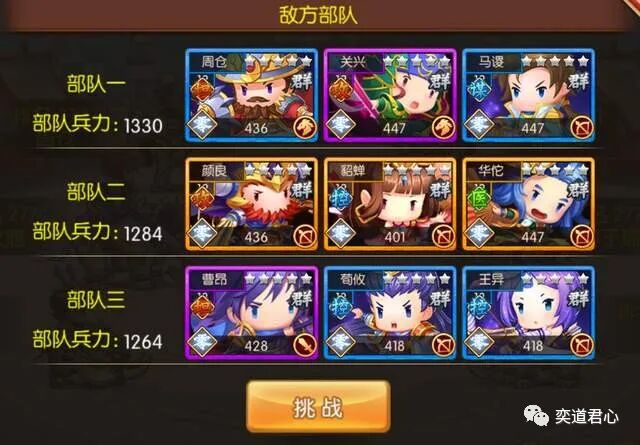 1:玩家在参与之前,需要组建三支固定成员的部队才可以进行挑战。