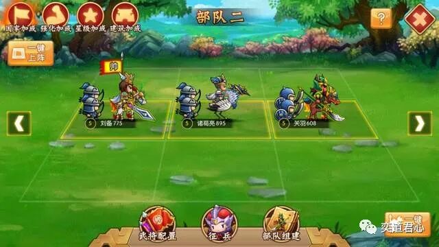 虽然蜀汉政权是东汉末年三巨头之中综合国力最弱的,刘备麾下的人才数量也相对魏吴两国显得比较少,但是在质量方面还是相当王炸的。尤其是智囊团队有诸葛孔明,军事领域有武圣关羽,这两人几乎承包了那个时代的文武天花板。主打Q萌画风的休闲手游【萌军天下】也注意到了这一点,刘备、关羽、诸葛亮的组合就成为了系统首推给玩家们的开荒队伍。