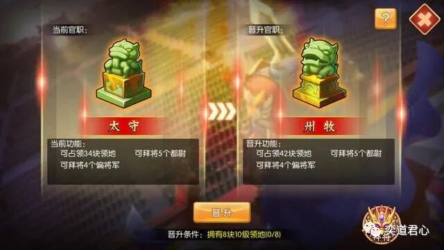 正所谓“人往高处走”,在【萌军天下】里当的官越大,自然好处也会越来越多。最直观的增益就是晋升的官职越高,就能同时占据更多数量的领地,从而给自己的武将册封更多官职和附加属性,以此来提升本阵营的综合战力。
