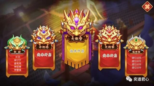 都尉之上还有四级军职,分别是偏将军(4人)、中郎将(3人)、大将军(2人)和大都督(1人)。官大一级不仅压死人,而且名额也更稀缺,毕竟物以稀为贵,游戏和现实都遵循此理。