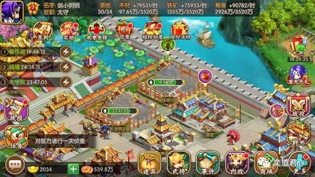 每天登录【萌军天下】的第一件事,就是把自家的建筑敲敲打打,如果能用加速道具就加速,顺其自然一整天也很好。只要在外头攻占的野地等级越高,派出去的商队越能赚钱,豪装整个主城还是非常轻松的。