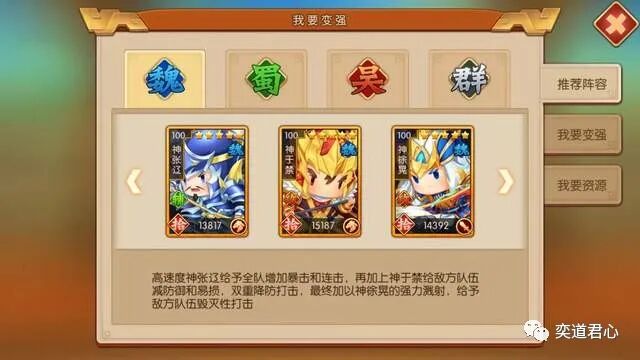 如今的三国题材类手游,除了在武将本身的单独包装上很花心思,在组合搭配方面就更下功夫了。采用Q萌画风造型的【萌军天下】,兼顾了可爱与实力的并存,在视觉放松的同时也体验得到战斗的能量。本期就带着大家观摩曹魏阵营的“物理攻击核弹”,神张辽+神于禁+神徐晃的男团。