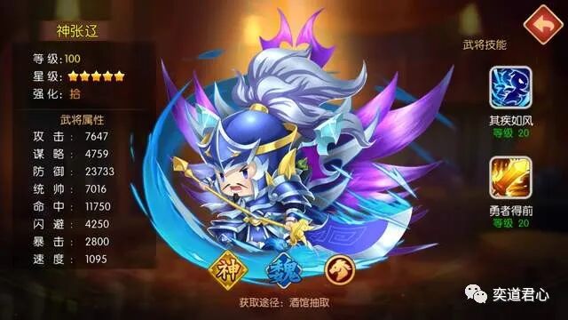 神张辽依旧是魏骑的扛把子,虽然他的定位是辅助,但是整支队伍缺了他就会失去灵魂。神张辽的其疾如风,在战斗开始的第一回合就能100%发动,这是个指挥被动技能,大幅提升全队成员的暴击率。与此同时,所有人还将进入愤怒状态,普攻两连击且免疫敌方的封禁。勇者得前在高额群体输出之外,还能令本方2人获得免疫混乱并大幅提升防御力。【萌军天下】的神张辽,扛起了全队的输出加持和免疫保护,因此他们没有必要携带医生。