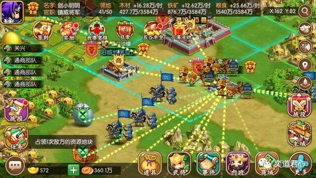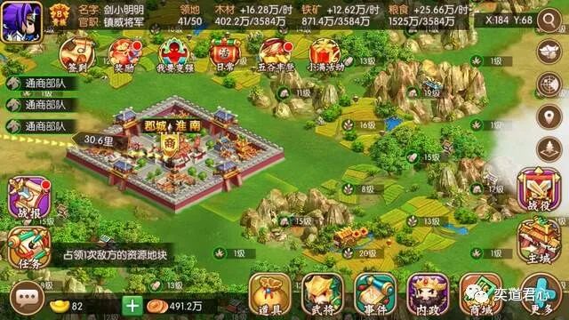 天下之中是豫州,而豫州之首又是谯,曹老板的面子真是大,凭着自己老家在这里就让此处成了核心。遗憾今天的谯属于安徽亳州,跟河南已经没啥关系了。【萌军天下】的谯周边,不乏20级的极品资源区,哪一支同盟能尽早取得谯的控制权,就能基本确立自己超级大国的地位。目前我所在的服务器还没有谁打下来,谯依旧是中立状态,只能每天派商队过来做做买卖。
