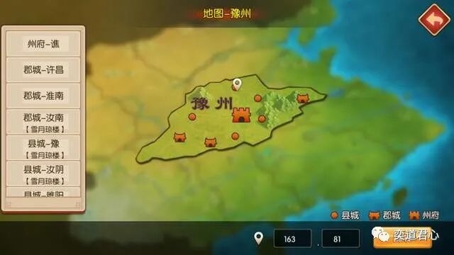 本期,就让我们先来看看【萌军天下】世界的豫州。众所周知,豫州之地是汉朝典籍《禹贡》所描述的九州之一,包括了今天河南省的绝大多数地方。大禹建立夏朝,将天下分为九州,豫州位于华夏之中故而也被成为中州,从夏朝到北宋几乎都占据着C位。【萌军天下】的豫州拥有着最肥沃的土地,其中谯城为核心的州府,许昌、淮南、汝南为郡城,豫、汝阴、睢阳、沛县、新阳为县城。