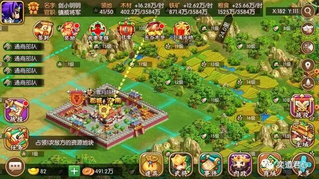 最后晒一晒我当前驻扎的沛县,因为这里的地皮等级更低,比较适合我攻占,所以就暂且安家在此了。总的来看,豫州地界确实肥得流油,即便县城也是遍地黄金。【萌军天下】里的发育也是一个高筑城广积粮的过程,养成勤侦查多搬家的好习惯,就能让自己更快地发展,开荒和贸易都不耽误。需要体验游戏的朋友,点击下面的【阅读原文】就可以下载啦。