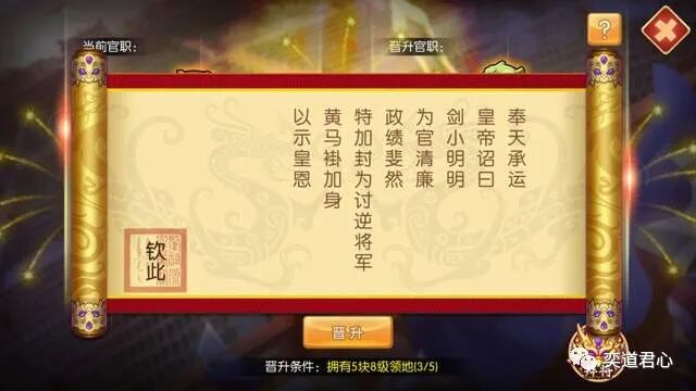 在【萌军天下】里想要快速晋升官职,就必须在尽可能短的时间内取得满足要求的资源区。借着风起同盟的这股风,从平民到太守也就半个小时的功夫,游戏源于生活,进个好单位确实起点高啊!本期的趣味分享就到这里,谢谢各位长期的关注和支持。需要体验游戏的朋友,点击下面的【阅读原文】就可以下载啦。