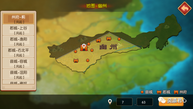 【萌军天下】游戏世界的幽州,跟真实历史上的定位一样,是华夏大陆最北边的州。生活在幽州的军民,除了要开发这片在外人看来的苦寒之地,更是要同草原游牧民族斗智斗勇。幽州以蓟(今北京)为首府,下辖上谷(今张家口)、渔阳(今天津)、右北平(今赤峰)三个郡城,另有容城、沮阳、雍奴、玄菟、辽东五个县城。公孙度要是知道他的“大燕”被降级成了县,估计气得棺材板都能掀了吧。