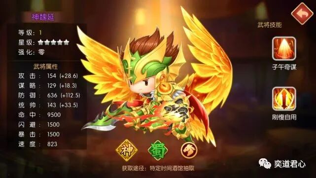 【萌军天下】里默认携带骑兵出战的神级魏延,是蜀汉阵营最硬核的坦克。历史上没有实现的子午谷奇谋,在游戏中成为了肉盾技。在战斗开始的首回合发起,连续7个回合按普攻伤害的50%回血给自身,且受到的所有伤害也会打个七五折。刚愎自用虽然是个贬义词,不过以此命名的技能却可以令被攻击的目标增伤三成,故而无论攻防能力,神级魏延都是绝顶优异的。