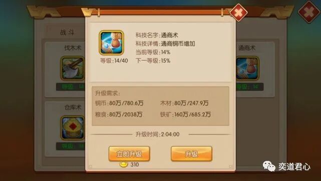 世界上最痛苦的事情是啥,肯定是人活着钱没了嘛!无论【萌军天下】的画风再怎么Q,它也依旧逃不过现实的柴米油盐,要是没有足够的铜板,就无法在酒馆里抽取武将,也不能换取其他需要的物资。因此,通商术必须放在优先研发的位置,让商队每次出门做生意的收益上限尽可能提升,拉回来的铜板自然也更多了。