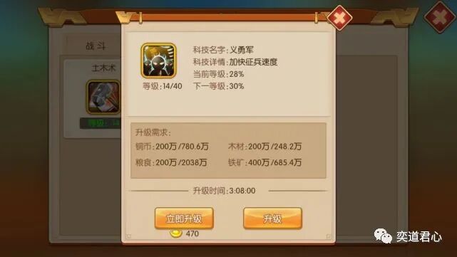 能力再棒的将军,手底下要是没有士兵来给他指挥,不就是光杆司令嘛。义勇军这项科技就是用来为我们加快征兵速度,以此大幅缩短有生力量恢复周期的。随着武将等级在游戏中的不断提升,带兵上限也会水涨船高,如果征兵的速度跟不上,那可真的太耽误事儿了。