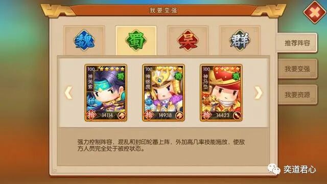 综合评价关索领衔的这支蜀骑,最让人印象深刻的就是乱和封。此外,他们的人均速度在培养到顶级之后都能破千,没有一个会拖队伍的后腿。天下武功唯快不破,【萌军天下】入手了这三人,就赶紧丢到修炼塔里快速栽培吧!本期的分享就到这里,谢谢各位长期的关注和支持。需要体验游戏的朋友,点击下面的【阅读原文】就可以下载啦。