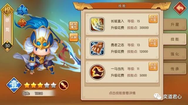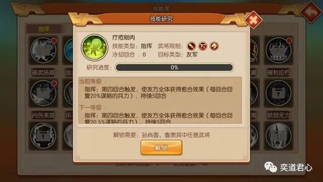 【萌军天下】附加技能库里的技能,主要分为两种类型,被动技能和主动技能。本期就先来详细介绍一下1到4,分别是奋武扬威、金波玉液、一马当先和疗疮剜肉。