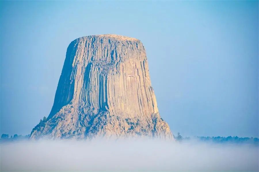 美国魔鬼塔纪念碑在云层上方的样子,看起来就像是外星人的机场。