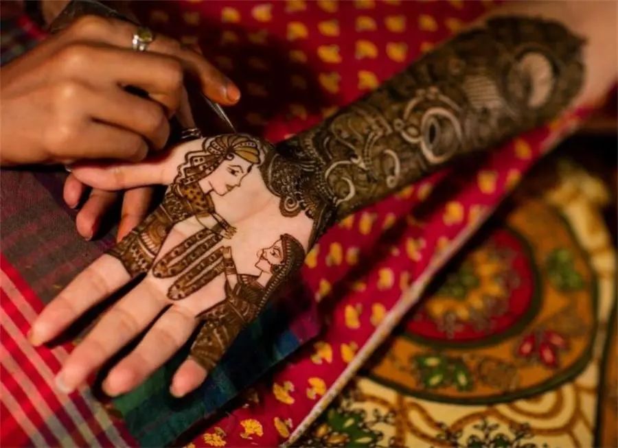 新娘出嫁时装饰指甲花,是中东、印度、非洲部分地区的传统风俗。