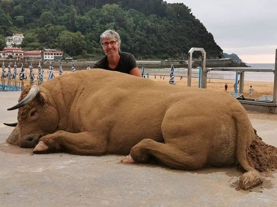 这头牛不是真的,而是用海滩上地沙子做的。
