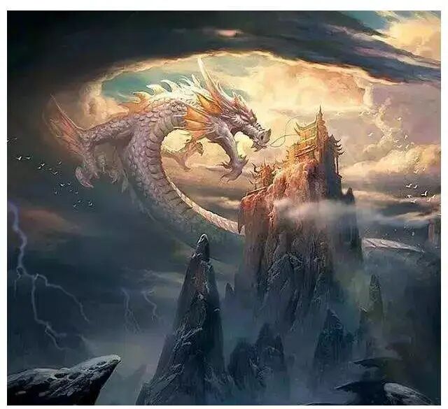 龙乃神物,《山海经》里的神许多都乘着龙飞来飞去,后来的传说里也有黄帝乘黄龙''鼎湖升天''一事。八卦第一卦''乾为天''中,六个爻辞里其中有五个爻辞讲到了龙,''潜龙勿用''、''见龙在田''、''(龙)或跃渊''、''飞龙在天''、''亢龙有悔'',如此集中提到龙,在其他六十三卦中是没有的。所以,龙肯定与''天''有关。尤为飞腾之物,多见于西北,我们推测当''天一月''悬浮在西北上空时,许多神乘着龙往来于''天''一地之间。
