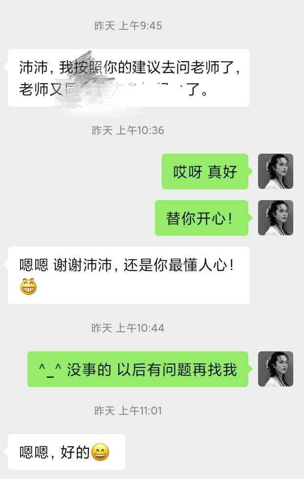 第二天一早,她开心地告诉我:导师态度有所改观。