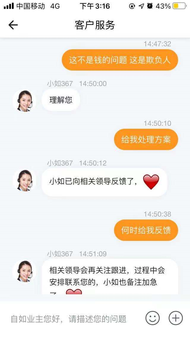 谢谢自如给我上了生动的一课,让我明白了什么叫店大欺客。