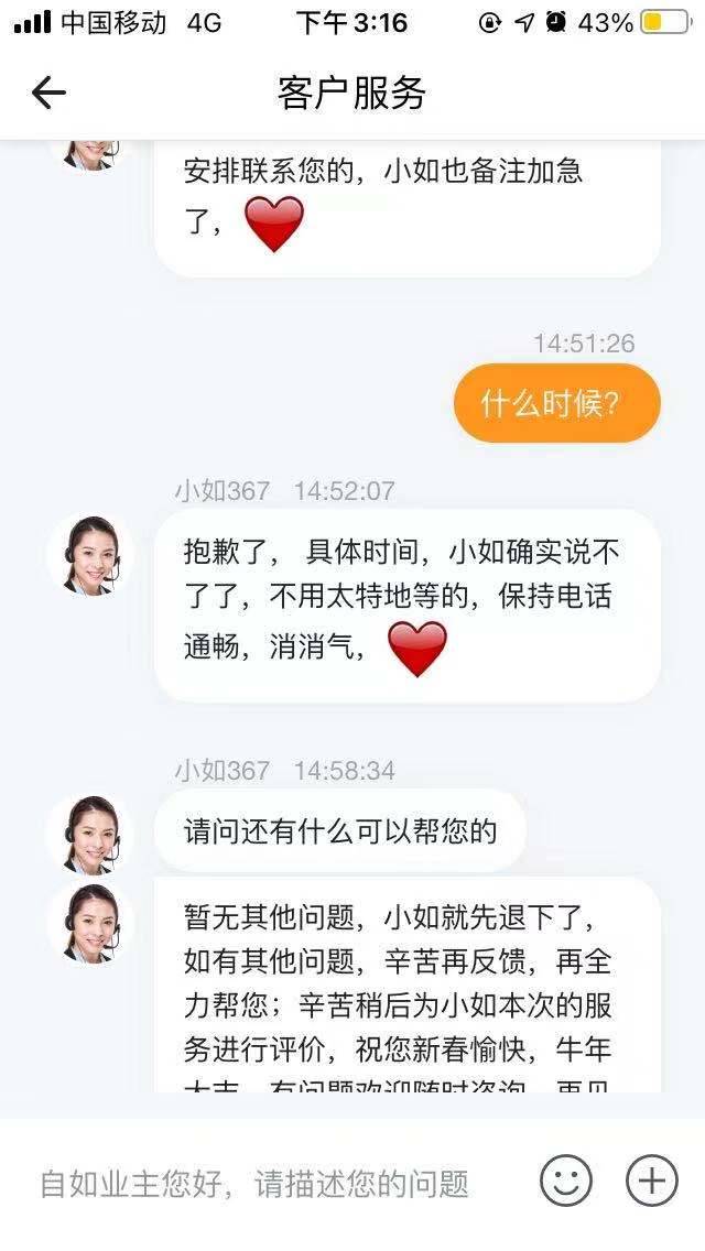 管家死活不露面,每次打电话他永远都是“我催了”“我可以把电话截屏发你”。