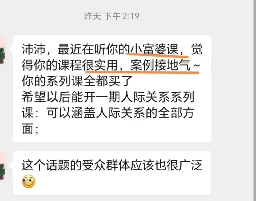 现在的小富婆课程,目前虽然只讲了3次课,好评超多。