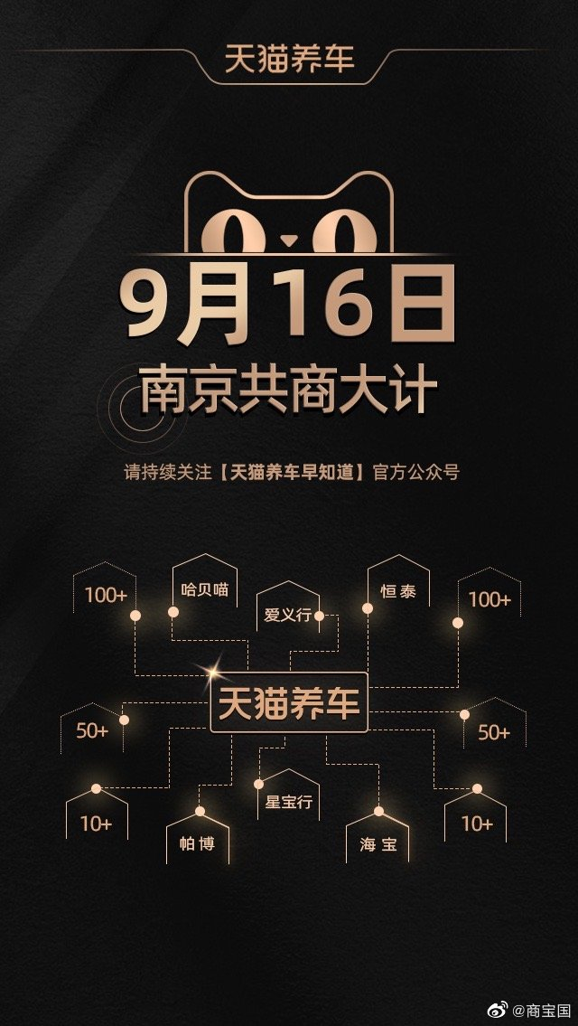 结合图片信息来看,天猫养车将在9月16日举办一场与“联合运营”新模式相关的论坛,并涉及哈贝喵、爱义行、恒泰、帕博、星宝行、海宝等众多区域连锁企业。