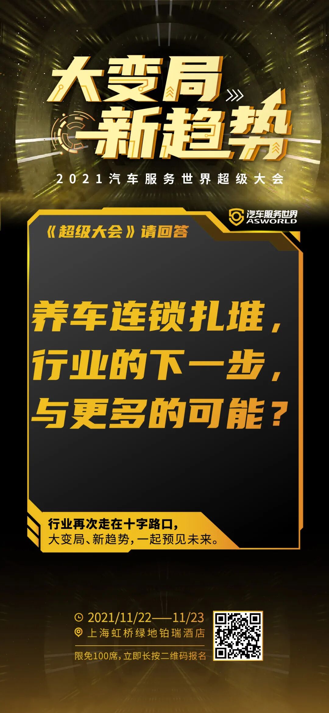 主机厂、猫虎狗、互联网平台、油电轮…多方势力纷纷重注养车连锁,当行业朝着一个方向努力时,其他的可能亦在蓄能,2021超级大会,最高规格、最强人气,欢迎您的参与~