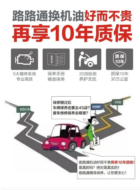 近日,路路通推出了换机油好而不贵,再享发动机10年或30万公里质保的活动。这意味着继兔师傅、途虎、中鑫之宝、天猫养车之后,又一家汽服连锁加入了“2020质保风潮”。他们这是要组队打4S店?
