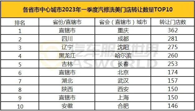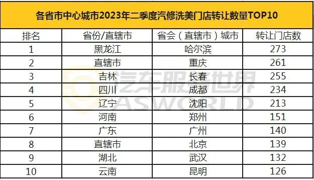 其中郑州汽服门店转让数量为151家,环比增长14%;广州汽服门店转让数量为140家,环比增长10%;昆明汽服门店转让数量为126家,环比增长8.6%。