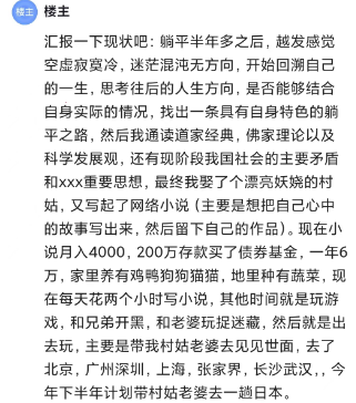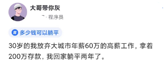 今天分享的是一位30岁的程序员,放弃了60万年薪的大城市工作,直接回老家躺平了,看看你是否会羡慕他的生活。