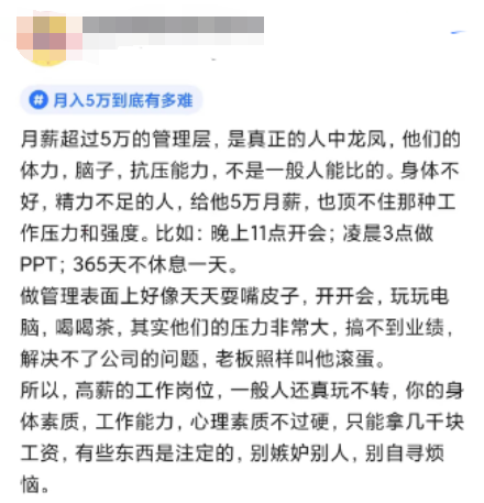 真跟高管打过交道,就能发现别人的优势,你下班会干什么,但你知道高管下班后会干什么吗?不经历一些事情,人是无法想到一些问题的,经验的沉淀来自接触更多的人和事,而不只是在一线做那点工作。