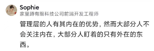 真要只是耍耍嘴皮子,开开会,玩电脑,喝喝茶,那就是谁都可以干,谁都可以去应聘,但事实是这样吗?你公司换个CEO、CFO、COO等,结果能一样吗?眼睛看着轻松,实际并不那么轻松。