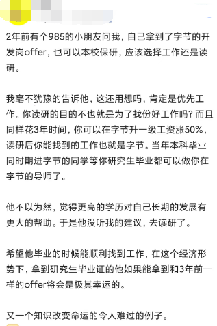 今天讨论的是985本科学历本身很高了,到底该去读研,还是该去工作的问题。不同的人视角不同,相信很多人会面临同样的问题,一起来探讨下。