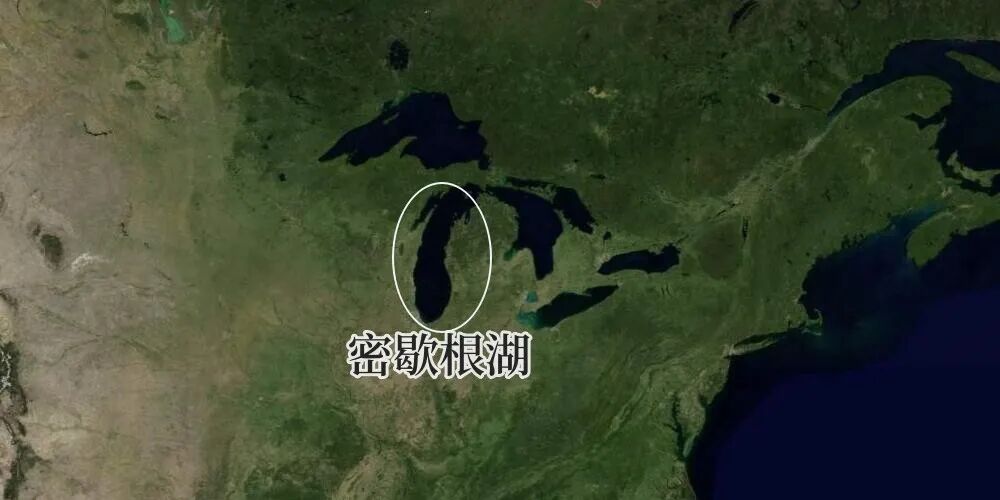 密歇根湖也叫密执安湖,是北美五大湖中面积居第三位、唯一全部属于美国的湖泊。该湖南北长达517千米,东西最宽约190千米,面积5.8万平方千米(略大于半个江苏省)。湖岸线长2100千米。湖泊深度由北向南渐减,平均深84米,最深处达282米。南岸平直,沙丘广布,建有人工港;北岸曲折,多湖港和天然良港。经东北端的麦基诺水道与休伦湖相连。
