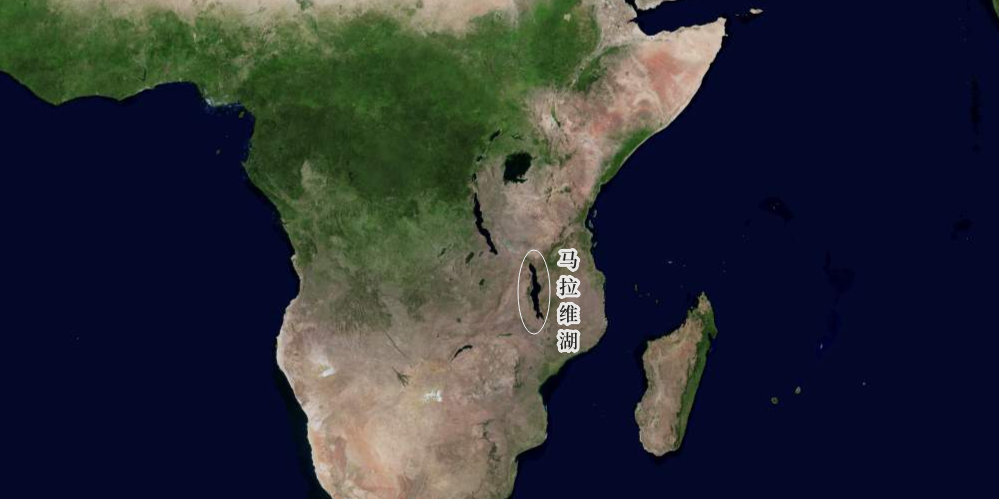马拉维湖地处非洲腹部,位于东非大裂谷最南端,是非洲第三大湖,世界第四深湖。东西宽24到80千米,长560千米,平均水深273米,最大水深706米,面积约3.08万平方千米(略小于三分之一浙江)。湖区大部分属于马拉维共和国,只有东北小部分属于坦桑尼亚和莫桑比克,为国际湖泊。