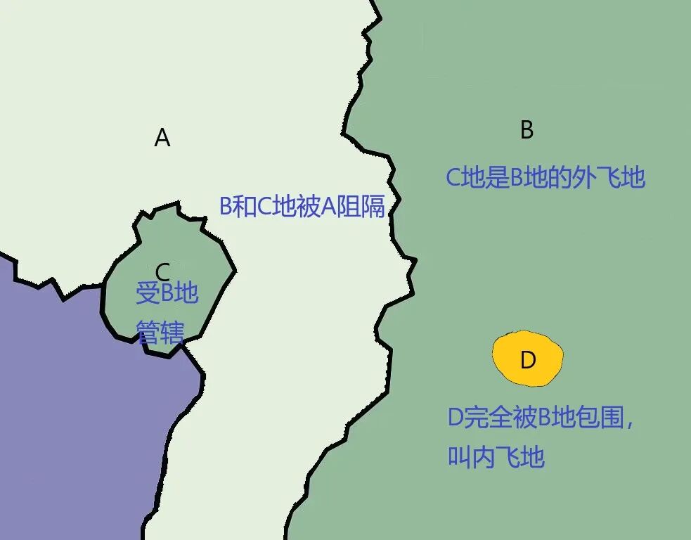 飞地,是一种特殊的人文地理现象,如果一个国家或者行政主体无法取道自己的国土或区域到达另一块国土,只能“飞”过其他国家国土或者公共区域才能到达的话,就称之为飞地。