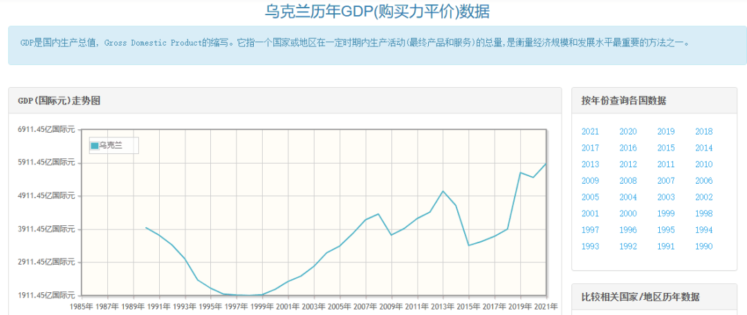 自从分家后,乌克兰靠售卖前苏联遗留下的家当度日,一度非常低迷,2021年国内生产总值约为2000亿美元,人均GDP约4835美元,人民生活水平在解体后的30年间躇躇不前,近两年才恢复到解体前的水平。