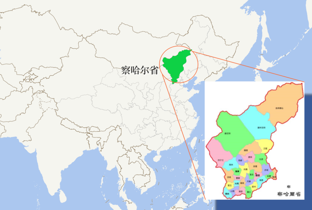 察哈尔省设立于民国初年,范围大致在今河北省张家口市,北京市延庆县,内蒙古自治区锡林郭勒盟大部,乌兰察布市东境。1948年前全省辖1市、19县、4行政督察区,18旗、1牧场,总面积约27.89万平方千米。