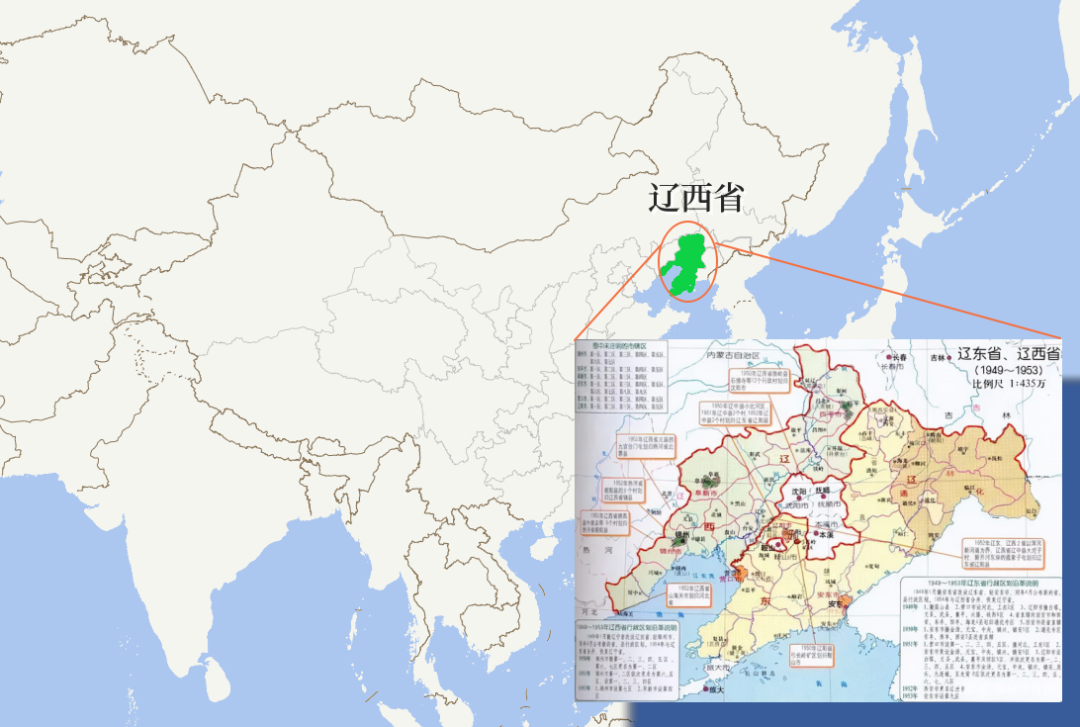 1949年4月21日重划东北行政区后,辽西省辖四个市,二十一个县,面积约10万平方千米。