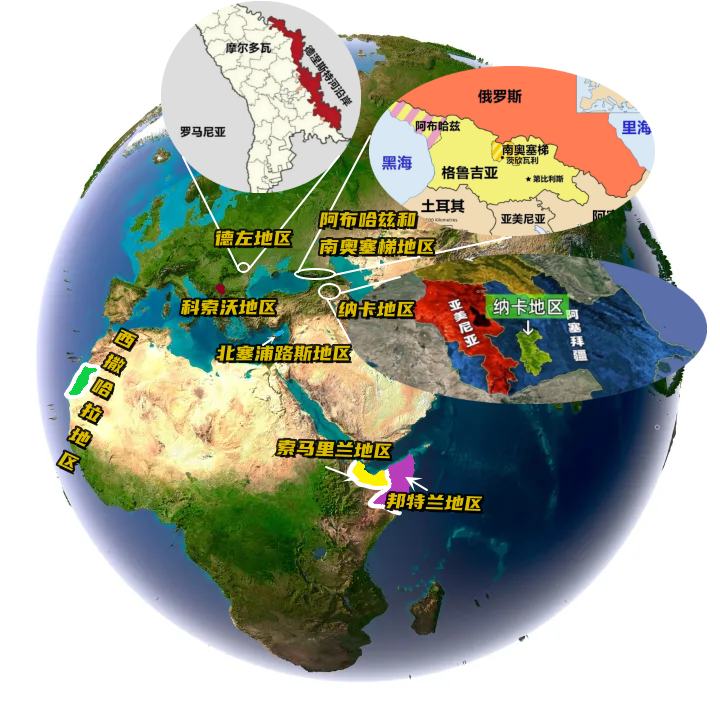 1.文章中的科索沃、德左、北塞浦路斯、阿布哈兹、南奥塞梯、纳卡、索马里兰、邦特兰等地区均非正式国家,请注意辨别。
