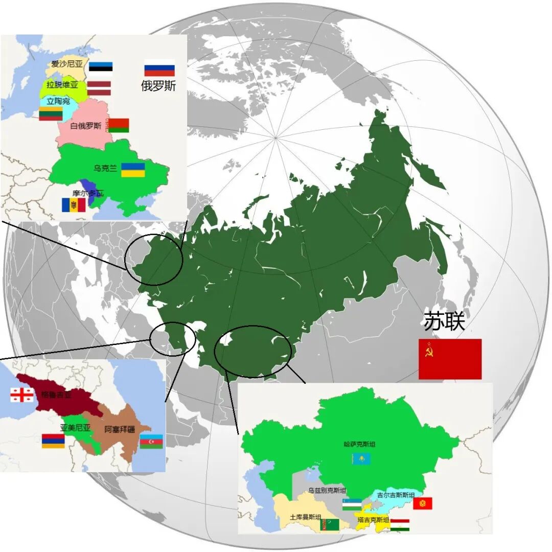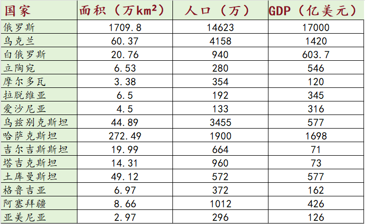 苏联解体为亚美尼亚、阿塞拜疆、白俄罗斯、爱沙尼亚、格鲁吉亚、哈萨克斯坦、吉尔吉斯斯坦、拉脱维亚、立陶宛、摩尔多瓦、塔吉克斯坦、土库曼斯坦、乌克兰、乌兹别克斯坦、俄罗斯十五国,俄罗斯继承了苏联在联合国的权益。