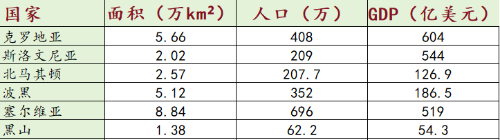 1993年1月1日,捷克斯洛伐克解体为捷克和斯洛伐克两个国家。捷克共和国,面积7.88万km²,人口1068万,GDP2465亿美元;斯洛伐克共和国,面积4.9万km²,人口545万,GDP1065亿美元。