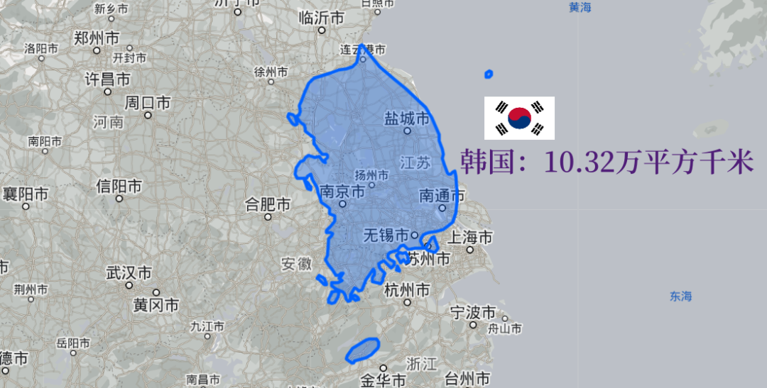 韩国与我国江苏省面积相当,但人口只有江苏的一半左右。