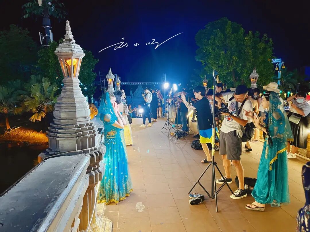 而“星光夜市”周围的许多商家发现了这样的商机,就开始专门为来到这里旅游的小姐姐在“星光夜市”为她们拍摄艺术照。