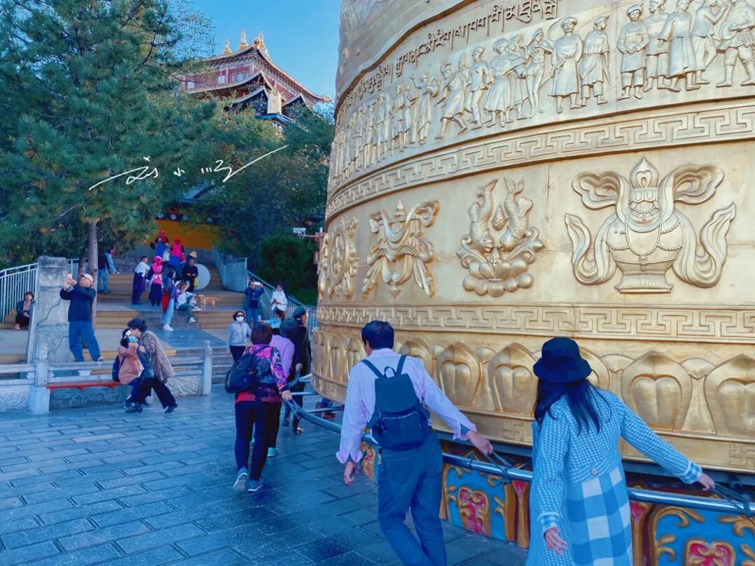 如果游客想要转动这个“巨型转经筒”,记得一定要从左至右顺时针转单数圈,通常来说都是转三圈,就可以为家人朋友祈福,每转一圈相当于念经124万遍。看看“巨型转经筒”周围的地板被磨到油光泛亮,你就知道每天有多少人来到这里转动“巨型转经筒”了。