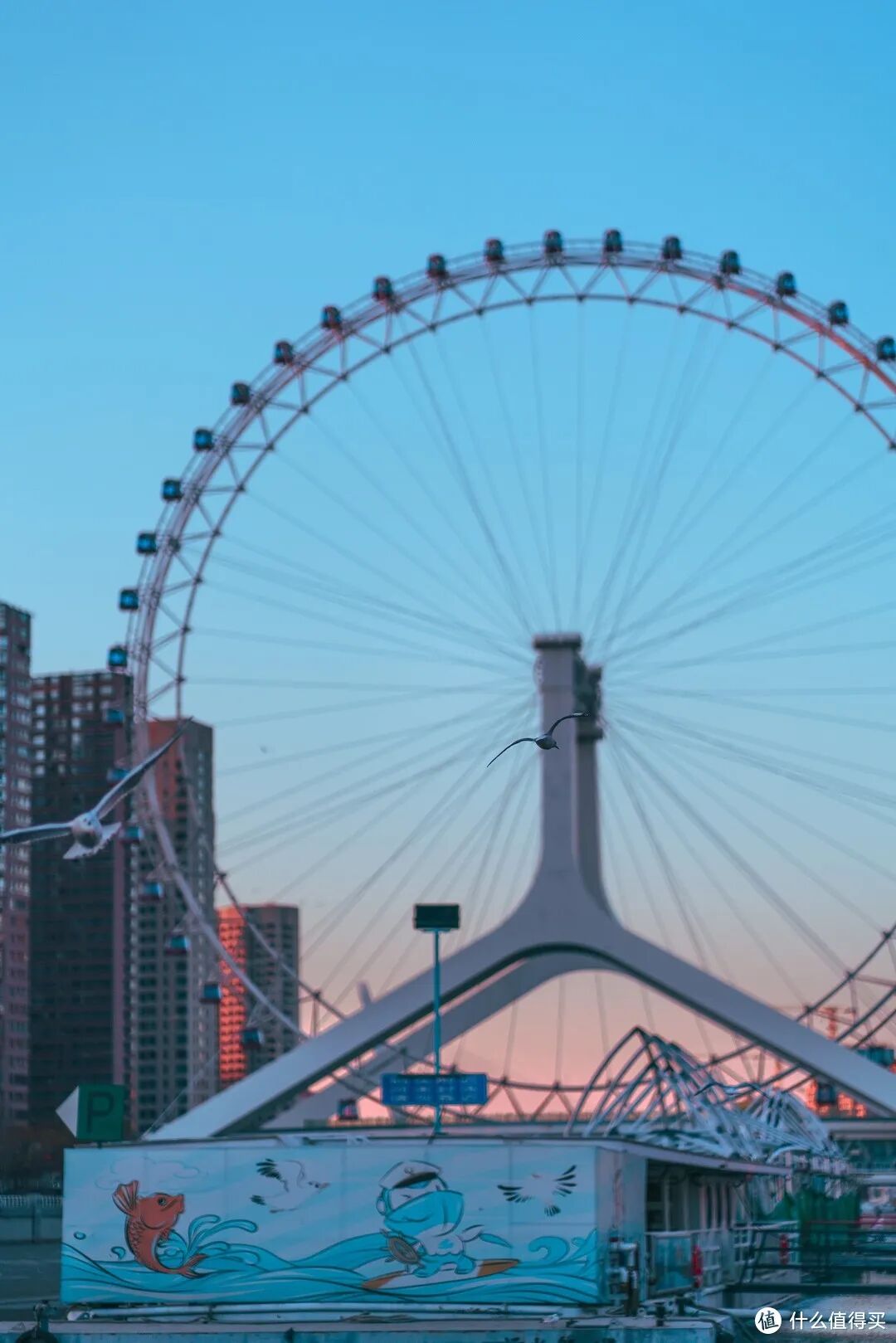 拍摄天津之眼最佳的地点是金钢桥,在金钢桥下对着海河东路拍摄,远处林立的高楼和欧式建筑相得益彰,天津的洋气自然也就在镜头中显现出来了。