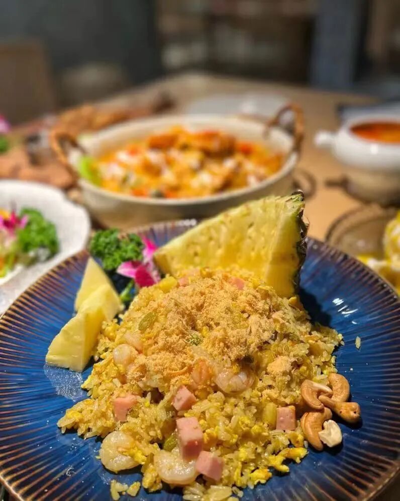 菠萝饭作为云南边疆傣族一道独具特色的美食,菠萝饭与普通米饭有很大的区别,它独有亚热带水果菠萝的鲜、香、酸、甜,与糯米饭醇香滑润的双重口感融合在一起,是傣族人非常喜欢吃的一道主食。