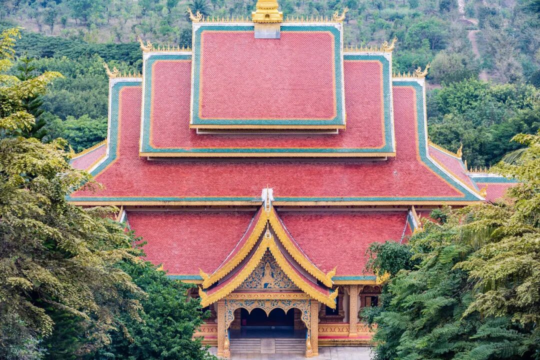 依山而建的勐泐大佛寺是南传佛教的象征之一,它们落差高达122.8米,是西双版纳面积最大的佛寺。在古代,傣王朝的皇家寺院“景飘佛寺”的原址上恢复重建佛寺依山而建,巧妙融入到景观及建筑群体中。