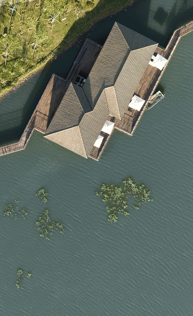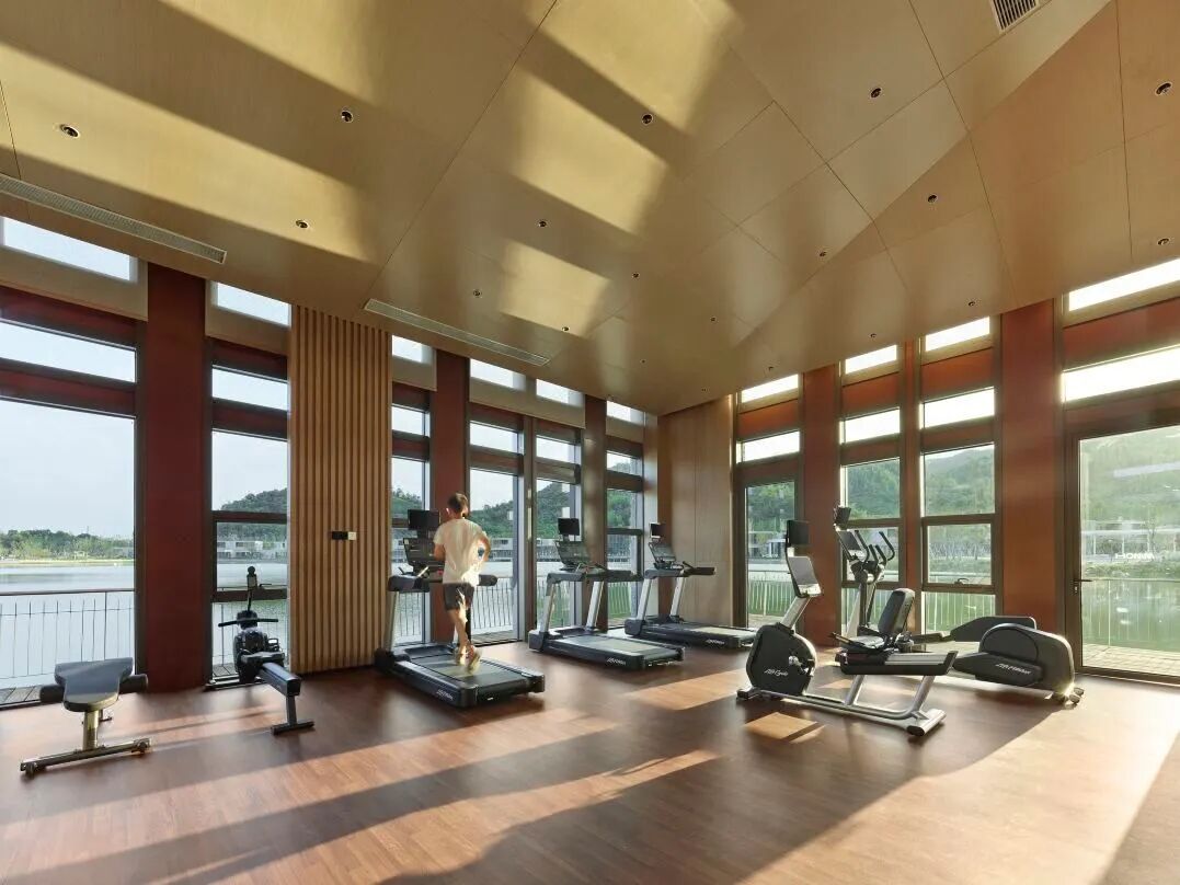 健身房和SPA馆就在水面之上的木屋中,一边运动放松,一边还可以欣赏湖景~